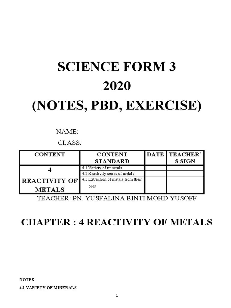 Science Form 3 Chapter 4 Exercise - Science Form 1 Pdf